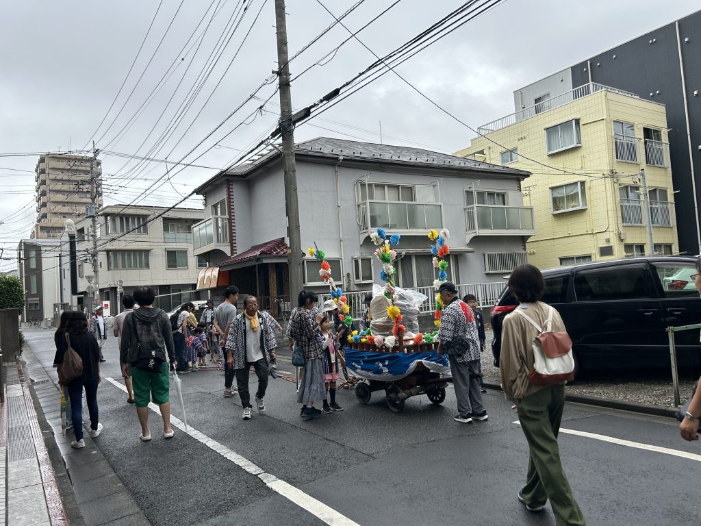 恒例のお神輿担ぎや山車引きでは、こどもたちが元気いっぱいに頑張り、祭りを盛り上げてくれました。おにぎりセットとお菓子で腹ごしらえをしたあとは、お遊び会が開催され、わなげやヨーヨー釣り、ベーゴマで楽しく遊びました。