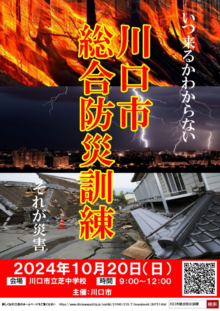 川口市ホームページリンク→令和6年度川口市総合防災訓練(住民訓練)の実施について