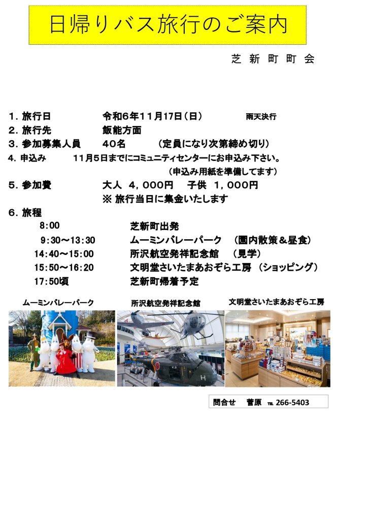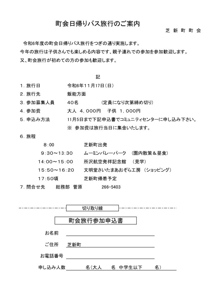 今年も恒例の芝新町町会日帰りバス旅行を企画いたしました。