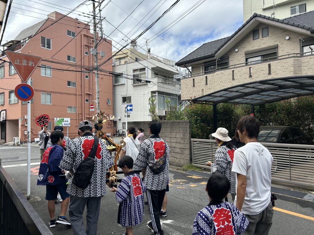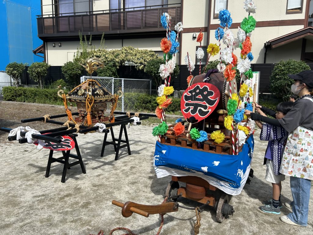 当日は、子どもたちが元気いっぱいに神輿や山車を町会内巡行しました。
