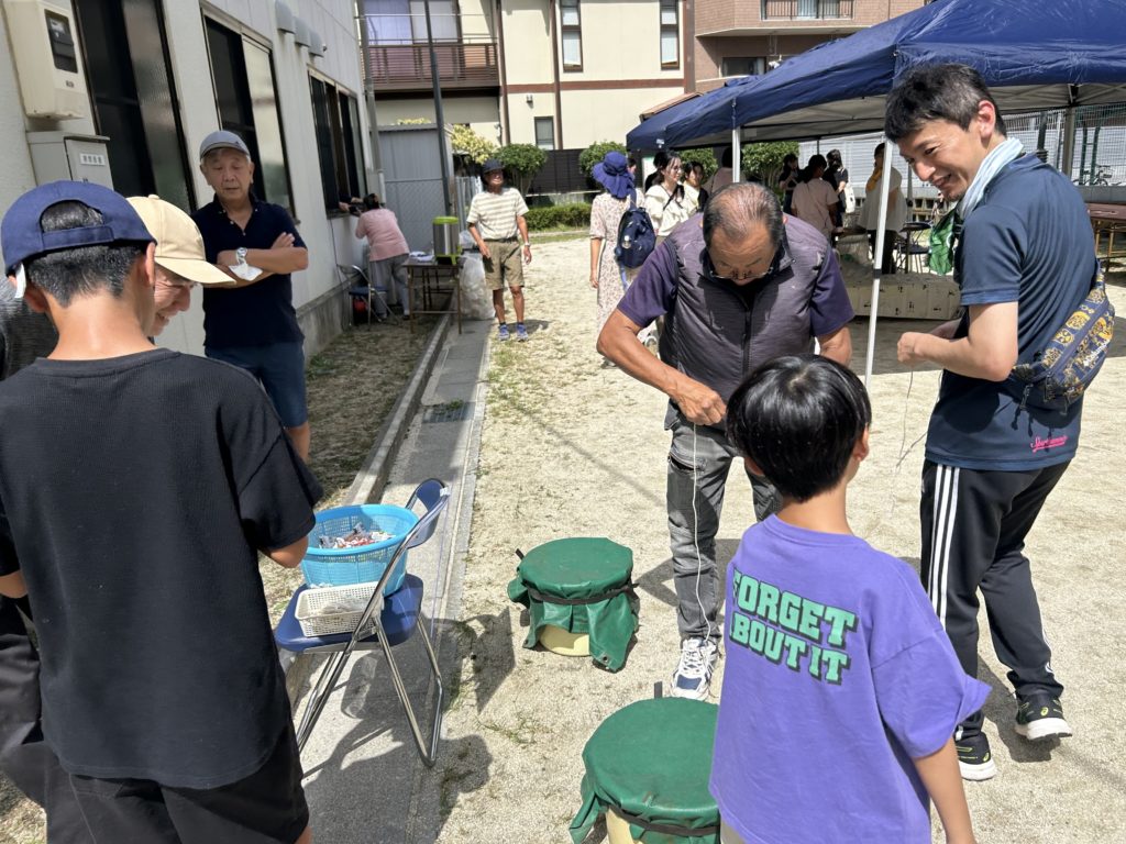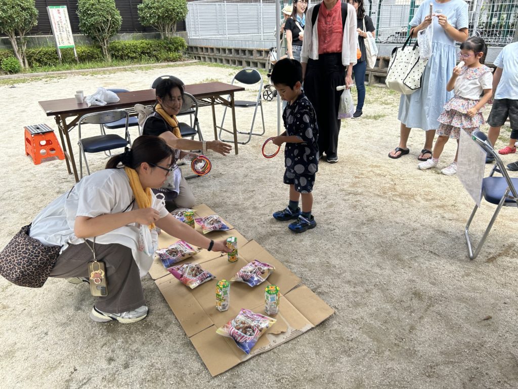 会場では、昼食のふるまいに加え、ヨーヨー釣り・スーパーボールすくい・わなげ・かたぬき・ベーゴマなど、昔ながらの出し物も多数行われ、多くの親子連れでにぎわいました。