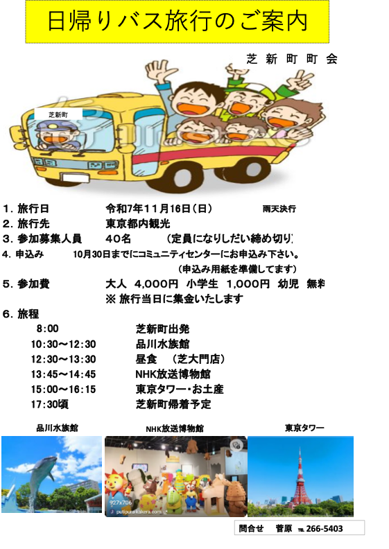 又、町会旅行が初めての方の参加も歓迎します。